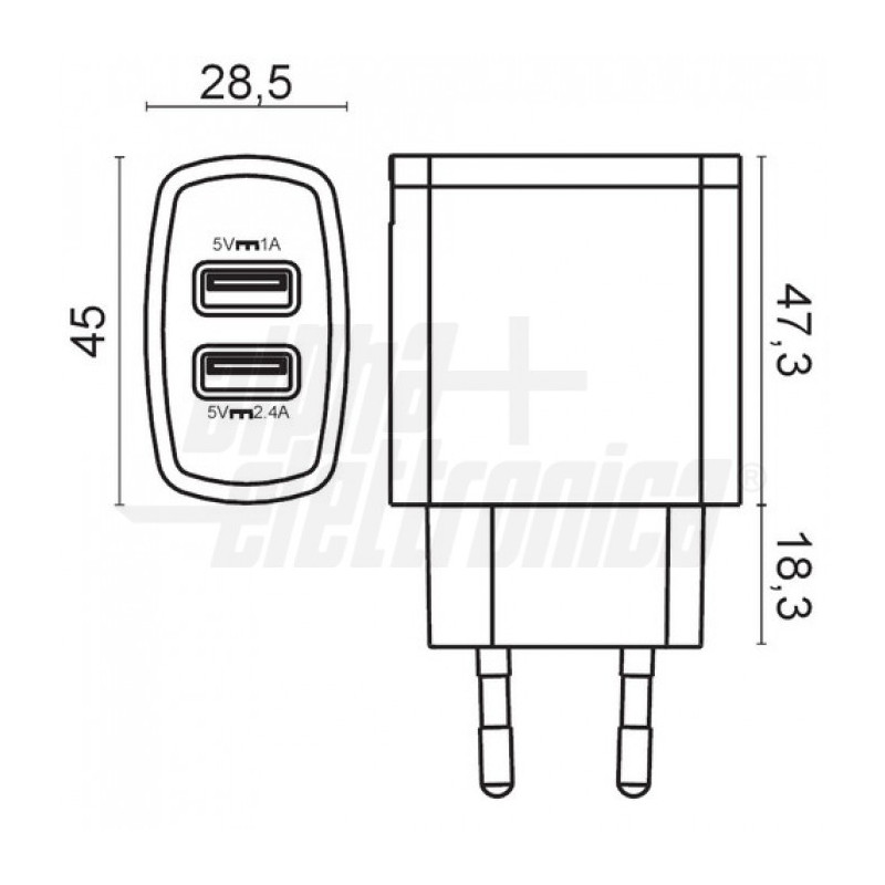 Alimentatore USB da casa e da viaggio con adattatori di spina per Gran Bretagna (UK), USA (AF), Australia (SAA) ed Europa (U).