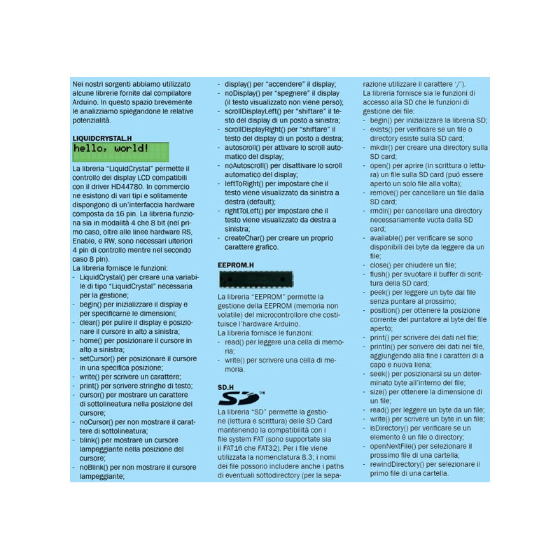Il firmware completo da caricare in Arduino è composto da circa 570 linee, quindi non lo analizzeremo in toto ma ci limiteremo a spiegare le funzionalità principali e a definire come viene gestito ciascun componente hardware. Per quanto riguarda il display LCD, Arduino mette a disposizione una comoda libreria (<LiquidCrystal.h>) già predisposta per diversi tipi di LCD (sia 8 caratteri per 2 righe che 16 per 2) basati sul parallel interface chipset HD44780. Dopo l’inclusione della libreria, è necessario inizializzare il collegamento con il display, mediante l’istruzione LiquidCrystal LCDDisplay (8, A0, 3, 5, 6, 7); in questa istruzione i parametri passati alla funzione indicano rispettivamente i piedini di Arduino utilizzati per collegare i pin RS, Enable, D4, D5, D6 e D7 del display. Nella funzione setup di Arduino è necessario eseguire l’istruzione LCDDisplay.begin (width, height) in cui i parametri del gateway, subnet_mask[ ] per la Subnet Mask e ssid[ ] per l’SSID access point). Viene inoltre richiesto di definire la cifratura con relativa password della rete. La scheda per collegarsi e pubblicare i dati su Google Documents deve funzionare come Web Client: tale configurazione viene realizzata nel setup dall’istruzione WiServer.init (NULL) in cui il parametro NULL specifica proprio la modalità client.