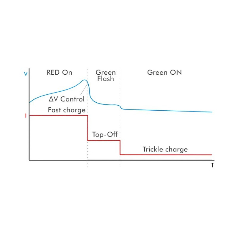 La carica avviene a corrente costante indipendentemente dalla tensione delle batterie da ricaricare.