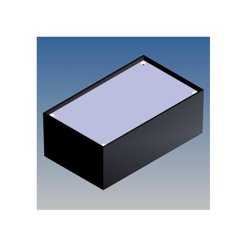 Contenitore in ABS nero (RAL9004) con superfici opache e pannello frontale in alluminio anodizzato (spessore 0,5 mm). All’interno sono presenti punti di fissaggio per PCB. Chiusura con quattro viti.
