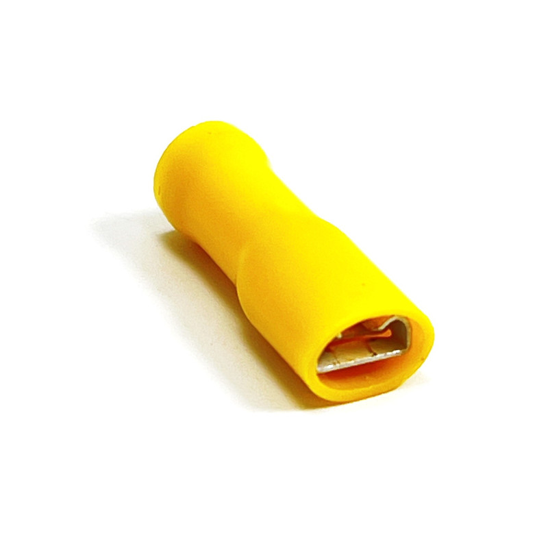 Faston femmina rotondo completamente isolato, in ottone stagnato