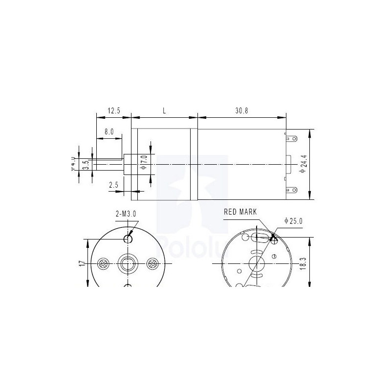 Micro motoriduttore in metallo funzionante a 6 Vdc con rapporto di riduzione 30:1.
