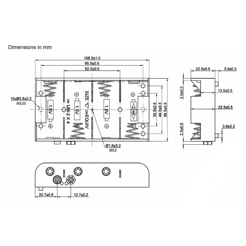 Contenitore per 3 pile stilo AA-UM3-LR6 da pannello