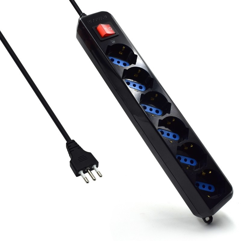 Formata da 6 prese universali (SCHUKO e BIPASSO 10/16A) comandate singolarmente da 6 interruttori luminosi