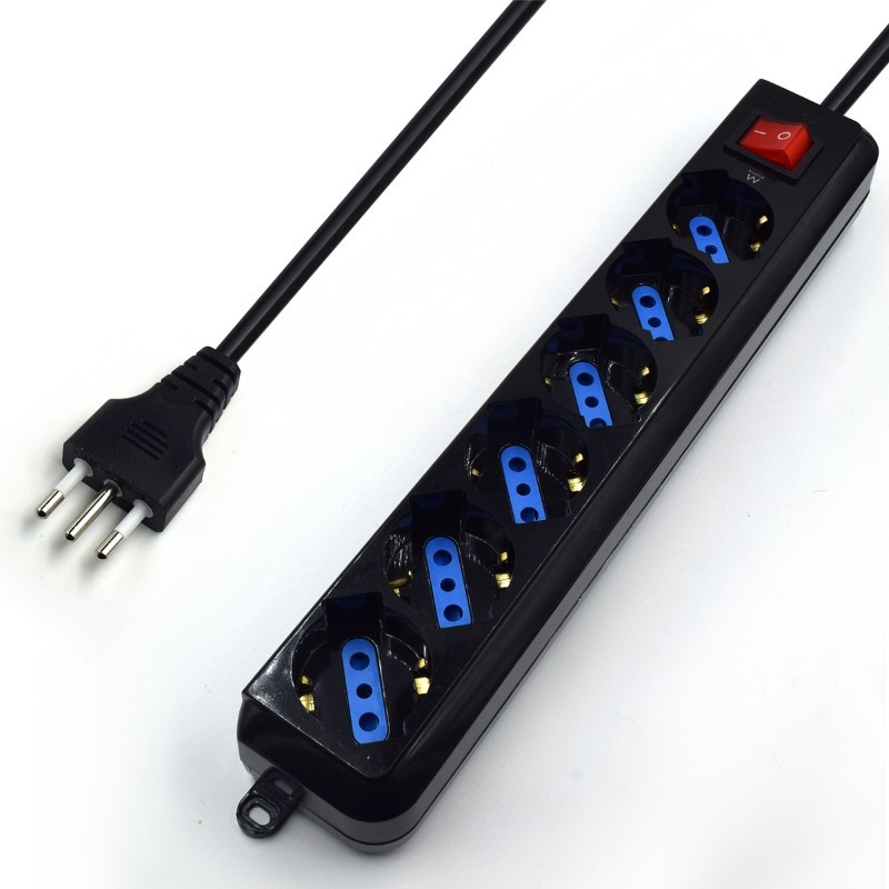 Con spina 10A e tre prese 10A con contatto di terra.