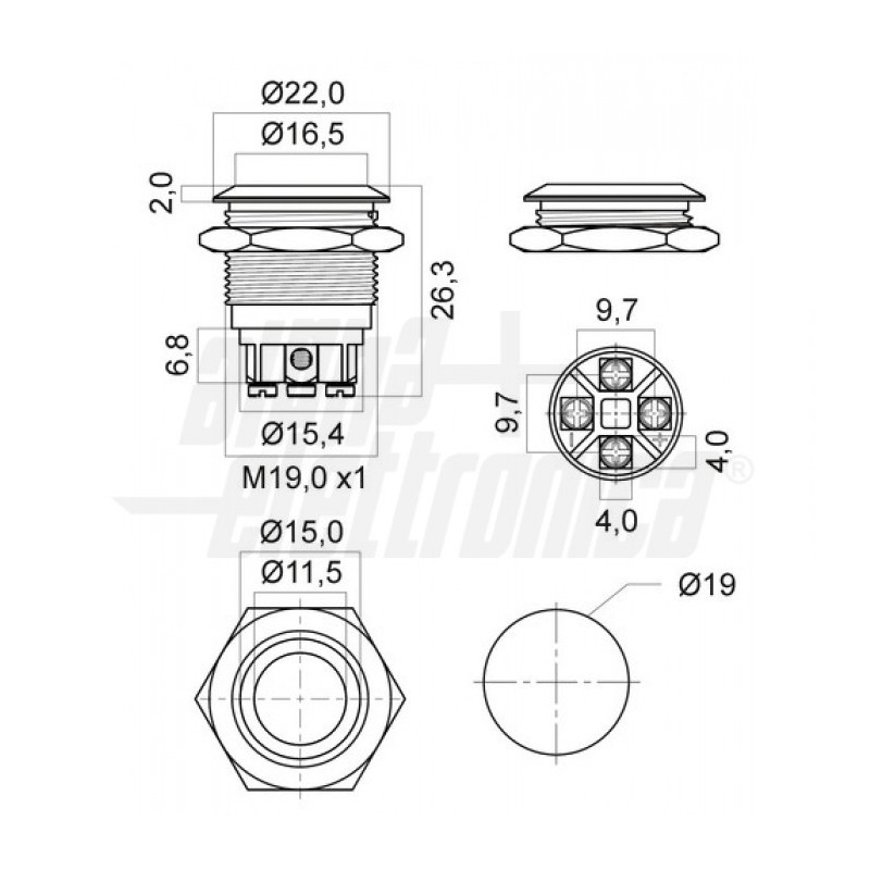 Pulsante Unipolare Antivandalo Normalmente Aperto con Autoritorno - Tasto a filo flangia