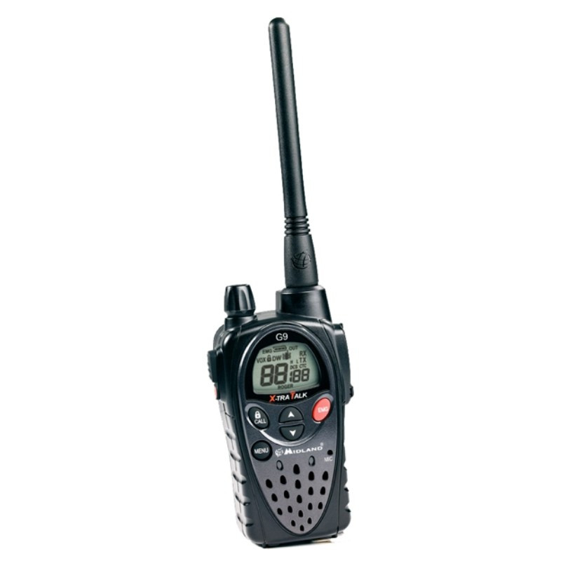La radio ricetrasmittente Midland G9E Plus è concepita per essere utilizzata in condizioni "difficili". Robusta e compatta, vi permette di comunicare liberamente ad una distanza di massima di 5 km senza ostacoli.