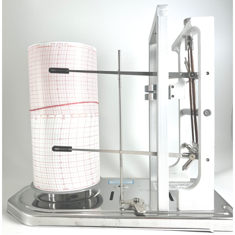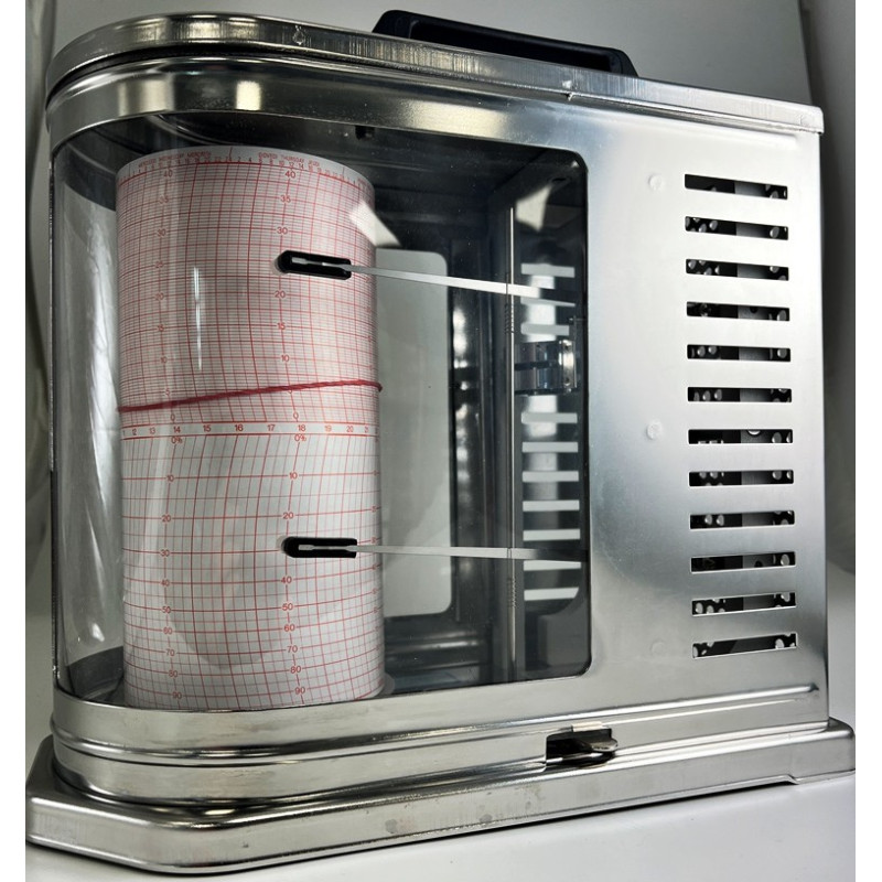 La registrazione della temperatura e umidità avviene contemporaneamente per mezzo dei pennini, su carta diagrammata avvolgente il tamburo.
