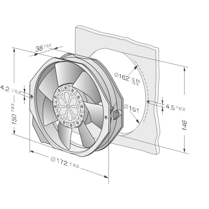 Ventilatore Assiale 115 VAC 80 X 80 X 38 mm su Bronzine Marca EBM Papst Modello 8500N
