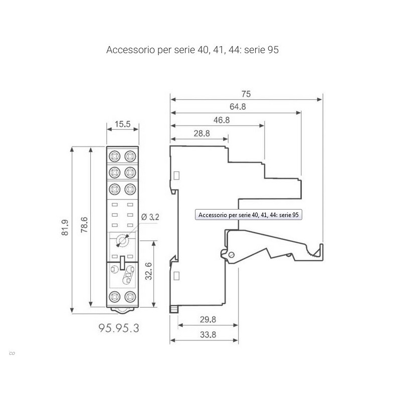 Zoccolo da barra DIN per relè bipolare